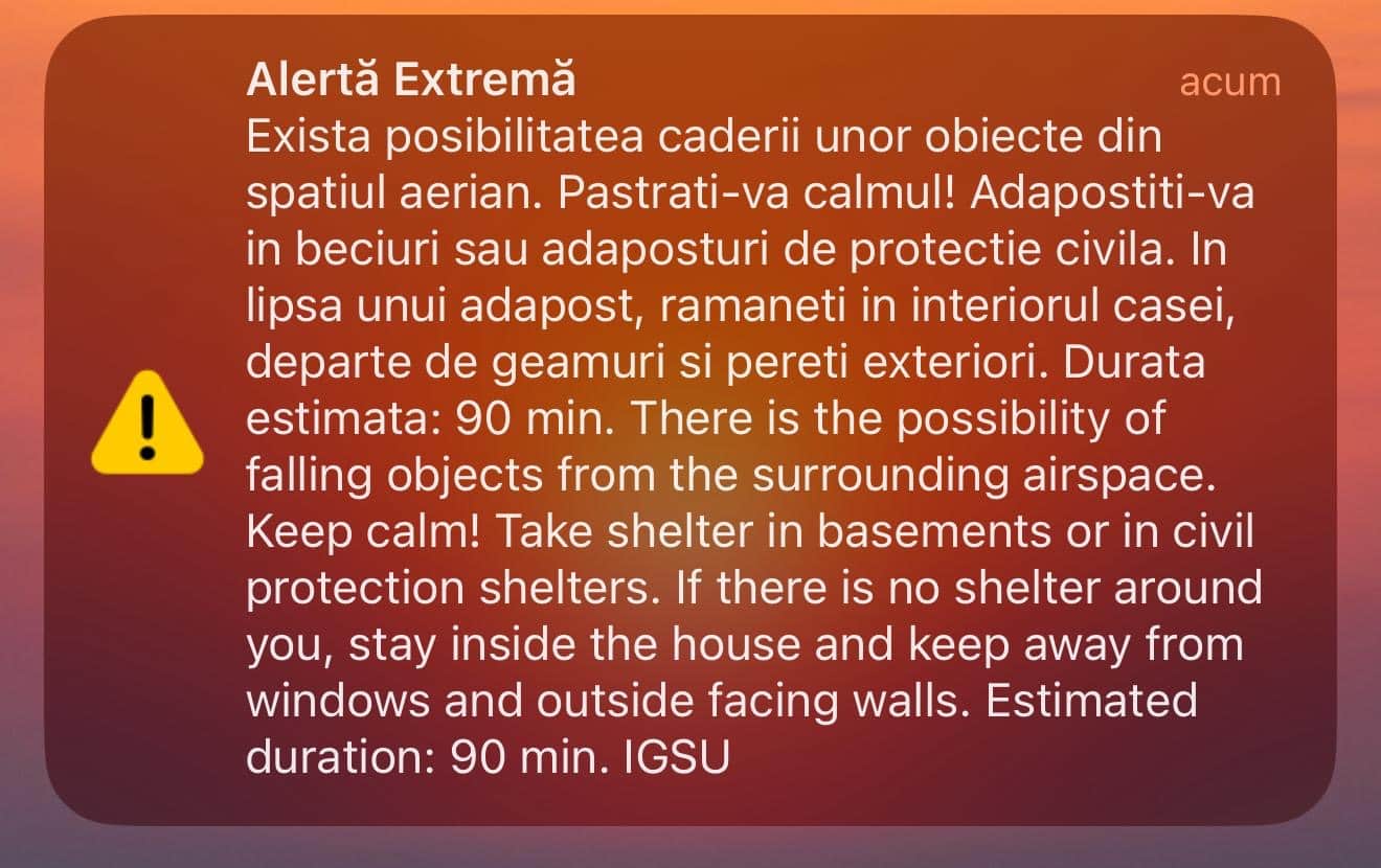 Mesaje de acest tip au mai fost transmise în trecut în contextul conflictului din Ucraina, autoritățile române fiind în alertă permanentă din cauza riscului ca fragmente de drone sau alte obiecte militare să ajungă pe teritoriul României.