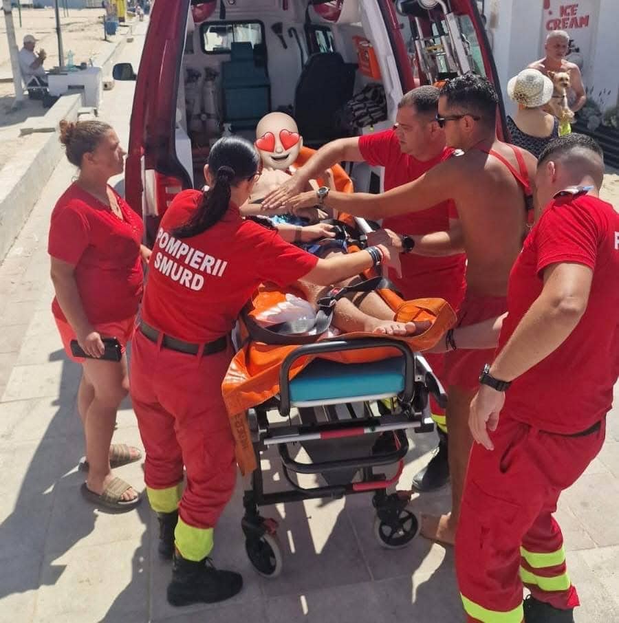 Echipa salvamarilor de pe plajele din Eforie Nord este antrenată pentru situații limită, inclusiv pentru cazuri delicate ca acesta.