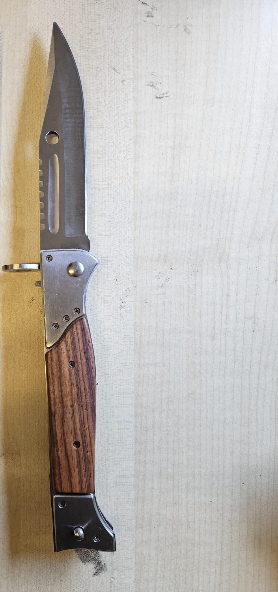 Forțele de ordine au procedat la interceptarea și identificarea persoanei, întrebând-o dacă are asupra sa bunuri sau substanțe interzise. Deși bărbatul a negat, în urma controlului corporal și al bagajelor, jandarmii au găsit asupra acestuia un cuțit cu dimensiunea totală de 34 cm.