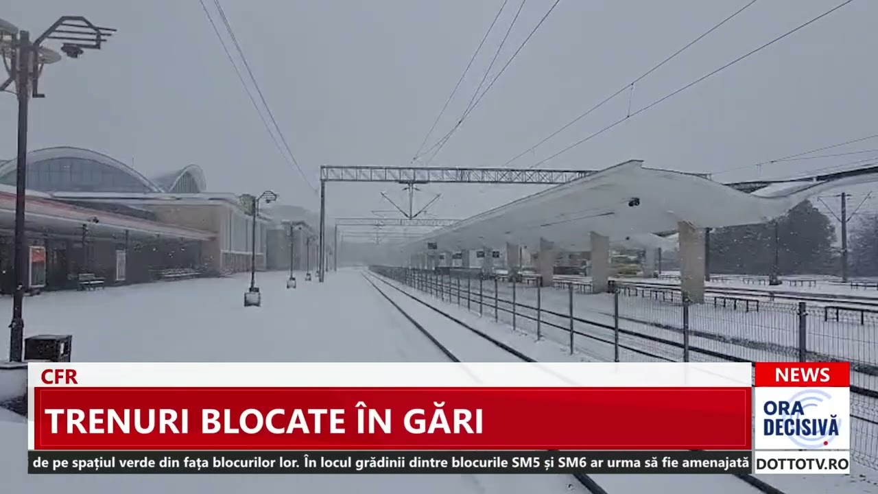 Potrivit CFR Călători, circulaţia următoarelor trenuri a fost suspendată, miercuri, pentru intervenţii şi degajarea căii ferate în urma ninsorilor şi a viscolului: IC 535, IC 534, pe distanţa Bucureşti Nord – Braşov şi retur, R 3021, R3024, pe distanţa Bucureşti Nord – Braşov şi retur, R 3022, pe distanţa Ploieşti Vest – Bucureşti Nord, R 3023, pe distanţa Bucureşti Basarab – Ploieşti Vest, IR 1628 şi R 3027, pe distanţa Braşov – Bucureşti Nord şi retur, IR 1571, pe distanţa Bucureşti Nord – Galaţi, R 5025, pe distanţa Ploieşti Sud – Bucureşti, R 5072, pe distanţa Mizil – Brazi, RE 5071, pe distanţa Bucureşti Nord – Ploieşti Sud, R 8581, R 8580, pe distanţa Slobozia Veche – Ciulniţa şi retur, IR 16079, IR 16078, IR 16083, IR 16082, IR 16081, IR 16080 pe distanţa Bucureşti Nord – Constanţa şi retur.
