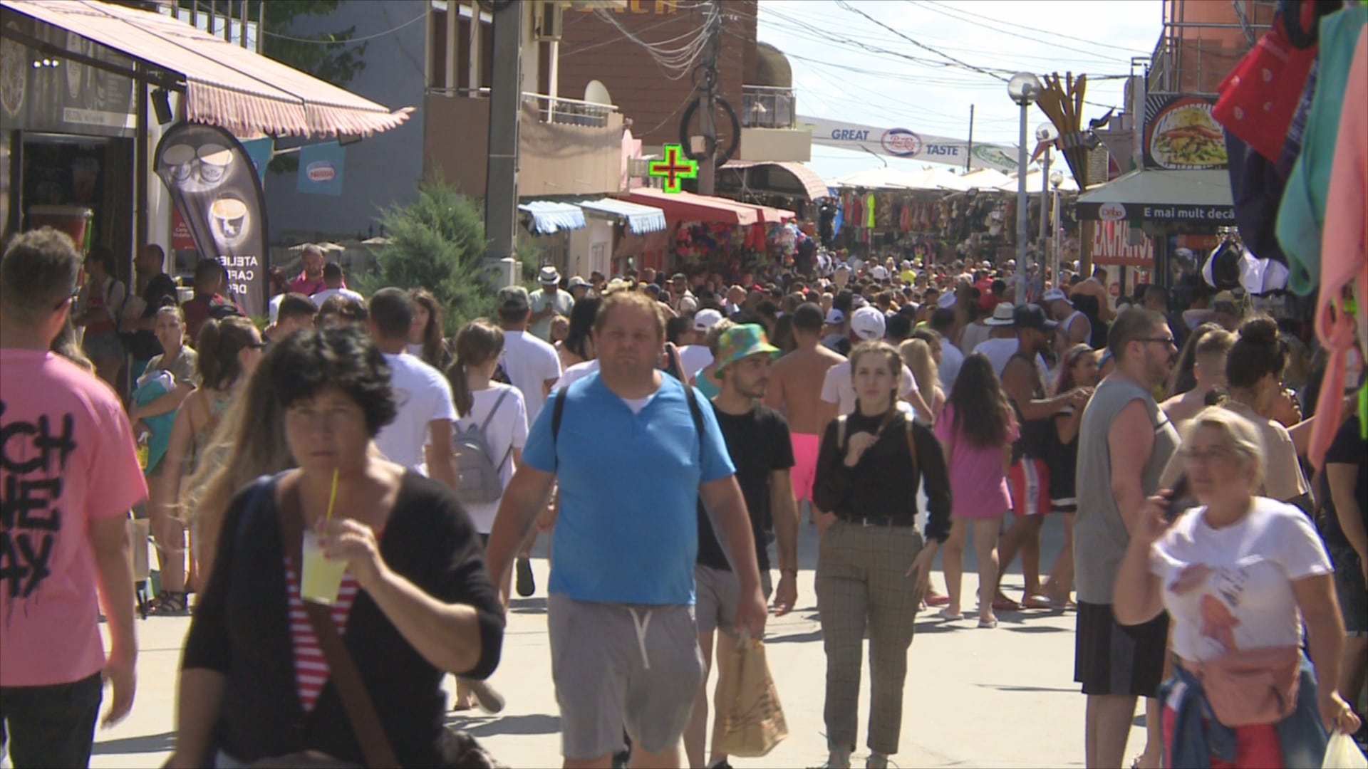 Plaja din stațiunea Costinești este sufocată de turiști. Oamenii se îngrămădesc pe faleză, pe plajă dar și în restaurante. Turiștii par să nu fie deranjați de aglomerație, iar pe drumul care duce spre stațiunile din sudul litoralului se circulă bară la bară.