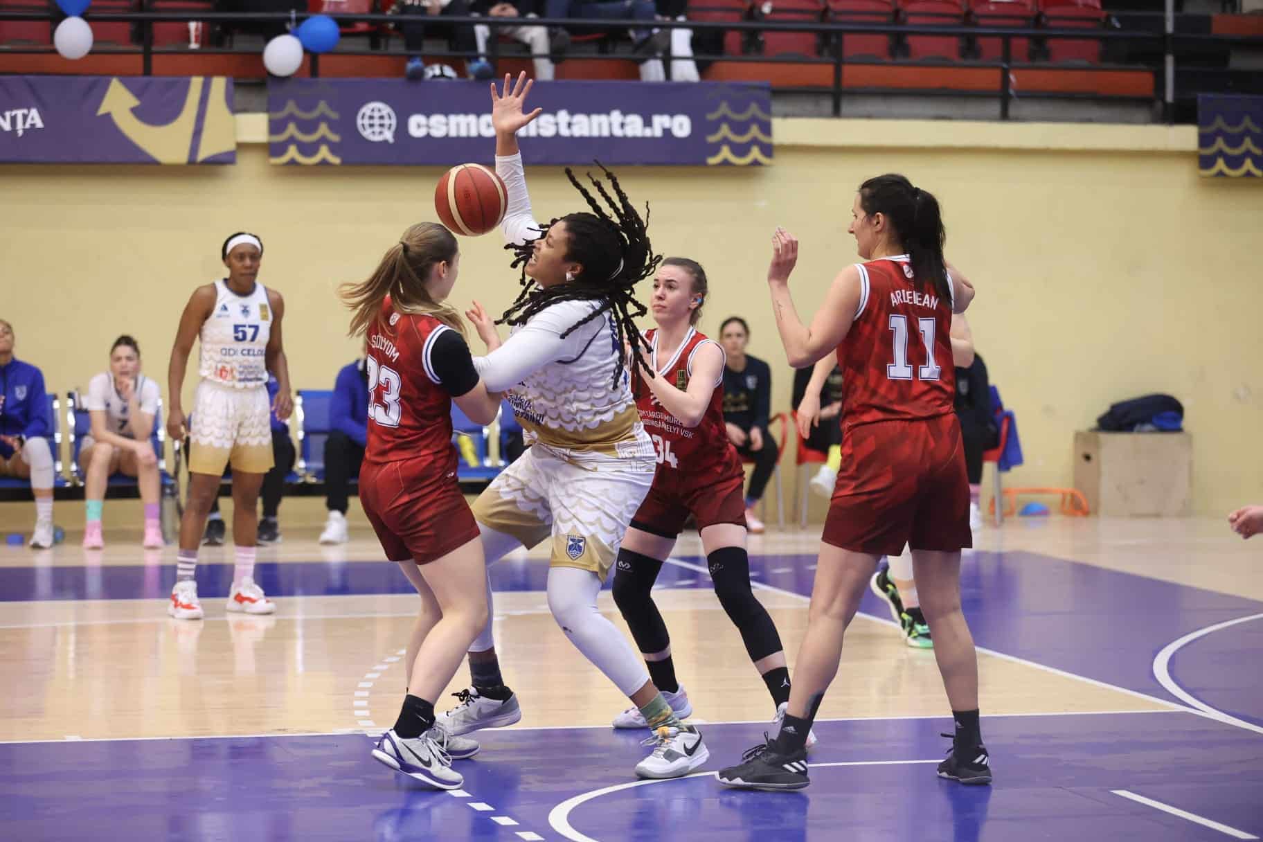 În primul joc echipa din Constanța a depus eforturi susținute pentru a se impune la limită, scor 62-61. Următoarea confruntare va avea loc la Târgoviște. După cum s-au desfășurat ostilitățile se anunță un nou joc extrem de disputat. În caz de egalitate meciul decisiv este programat pe 9 aprilie în Sala Sporturilor din Constanța.