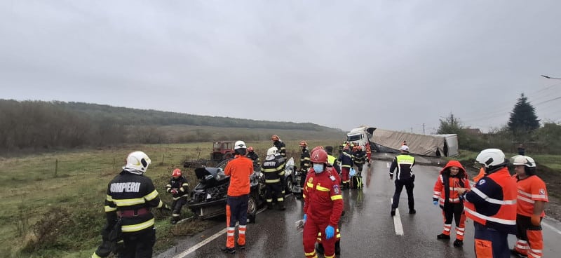 Potrivit primelor informații, un camion scăpat de sub control a intrat pe contrasens și a lovit un autoturism care circula regulamentar. Impactul a fost devastator, autoturismul fiind transformat într-un morman de fiare.