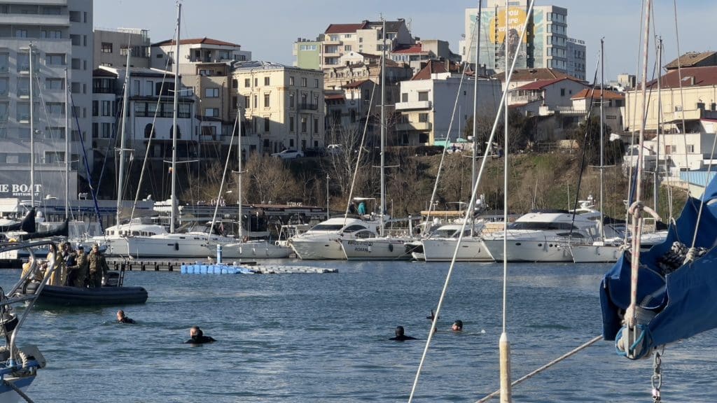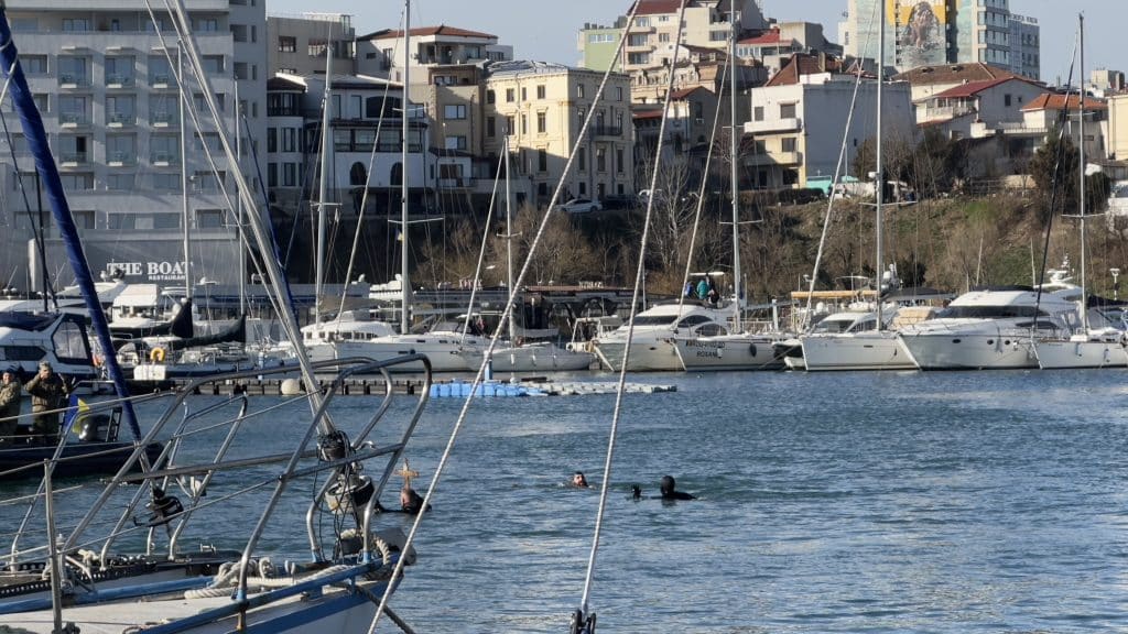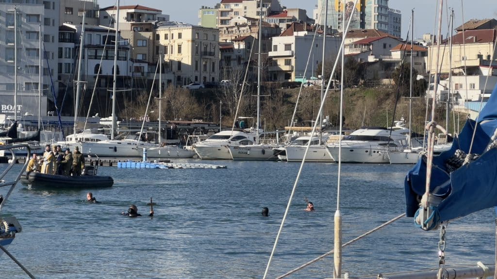 La finalul slujbei, după ce a sfințit marea, IPS Teodosie a aruncat trei cruci în apa mării, simbolizând Arătarea Sfintei Treimi la apa Iordanului.