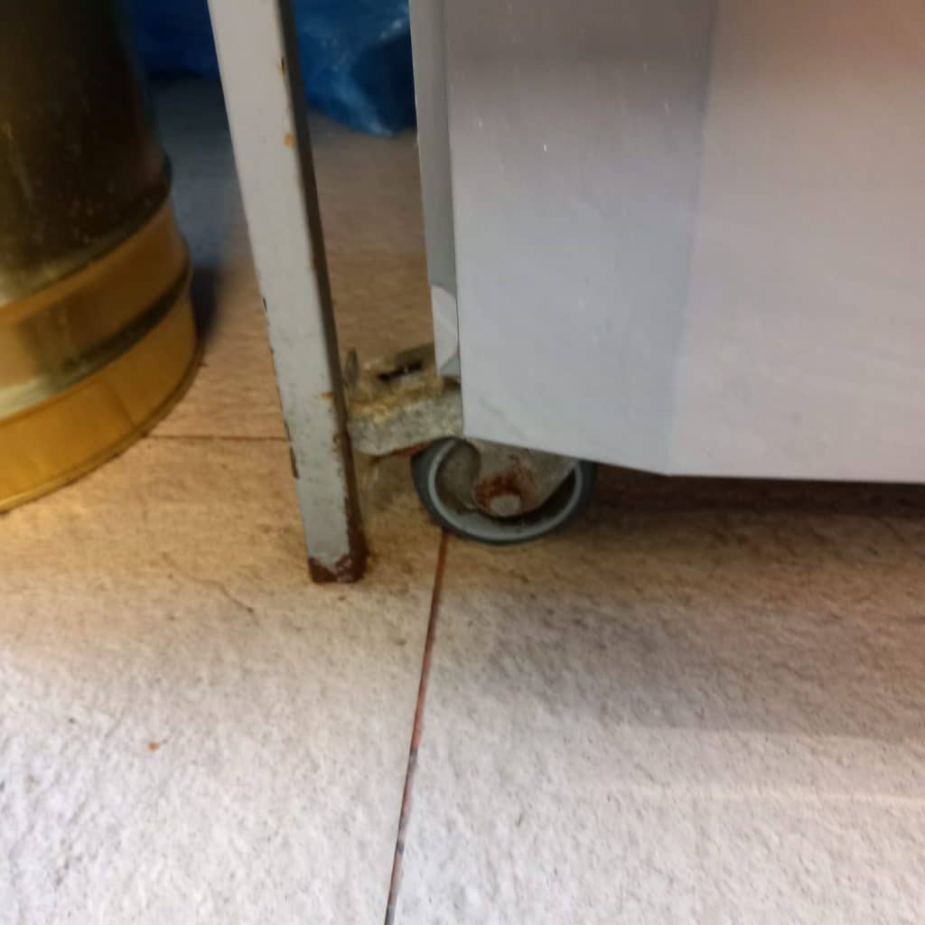 - Paviment și faianță deteriorate, acoperite cu depuneri de grăsime;