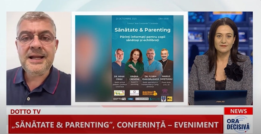 DOTTO TV și Centrul pentru Jurnalism Constanța, organizează marțea viitoare conferința „Sănătate & Parenting”, un eveniment interactiv dedicat părinților, cadrelor medicale și comunității locale. Printre invitați — dr. Mihai Craiu, medic primar pediatru, Urania Cremene, expert în parenting, părintele Marius Moșteanu, consilier spiritual, și dr. Florin Ioan Bălănică, medic specializat în psiho-nutriție și comportament alimentar.