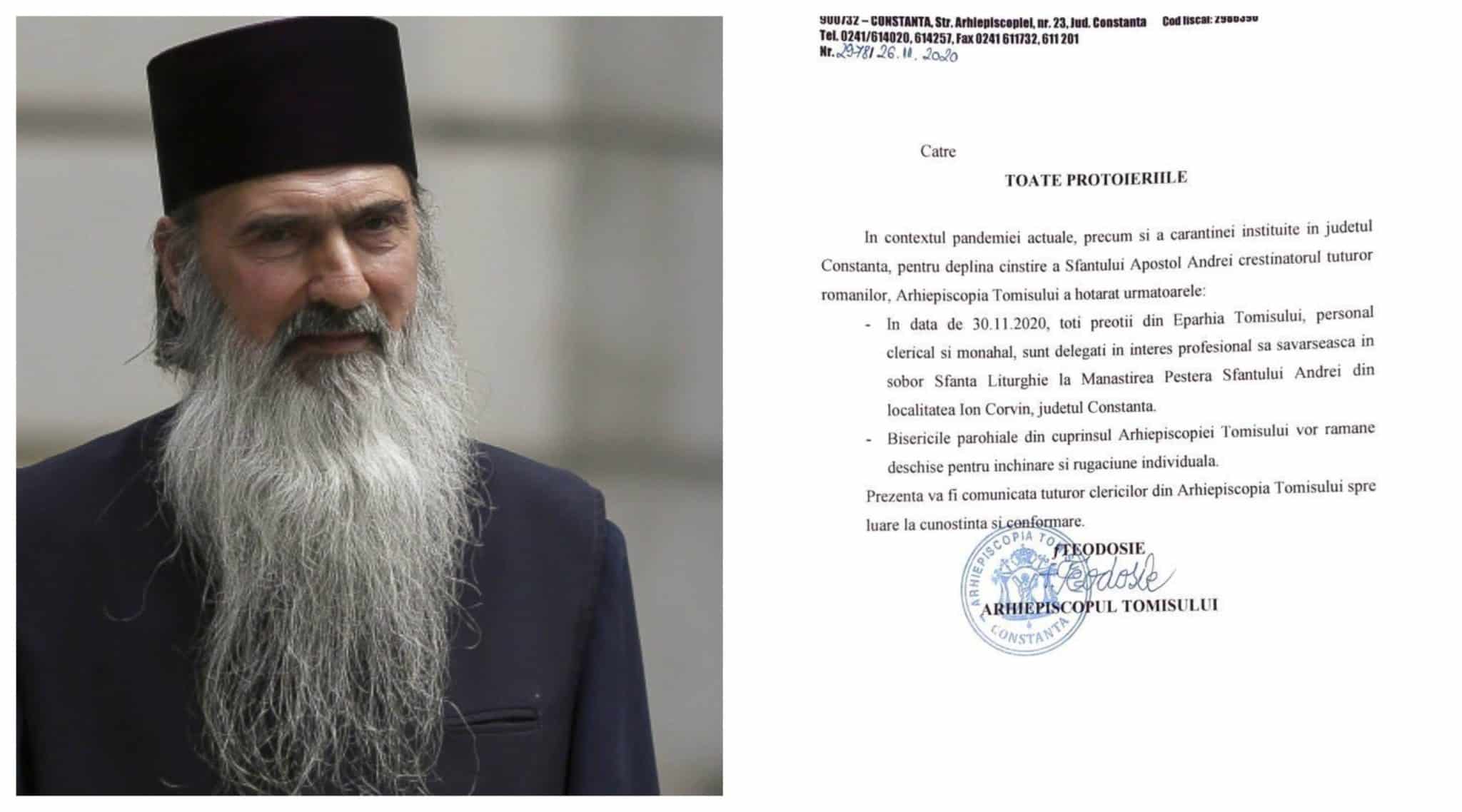 Printr-o notă internă din data de 26 noiembrie 2020, pentru deplina cinstire a Sfântului Apostol Andrei, ÎPS Teodosie a mobilizat preoţii din Eparhia Tomisului, personalul clerical şi monahal, să săvîrşească în sobor Sfânta Liturghie la Mănăstirea Peştera Sfântului Andrei din localitatea Ion Corvin din judeţul Constanta.
