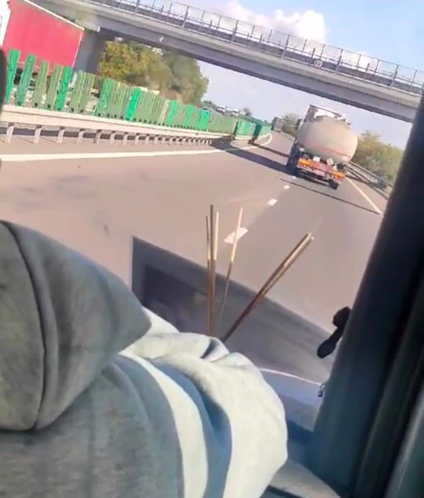 Speriat șoferul microbuzului a apelat numărul de urgență 112. Acesta le-a spus dispecerilor că în fața sa se află o cisternă înmatriculată în Ucraina al cărei șofer schimbă benzile fără discernământ și fără să semnalizeze, fiind în pericol să se răstoarne.