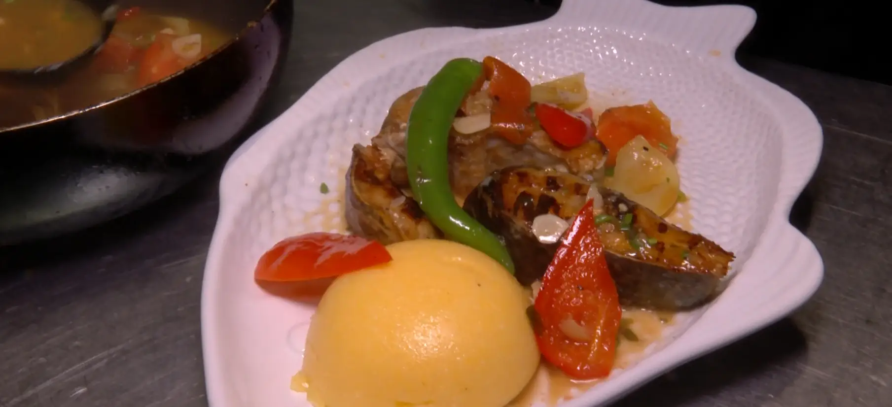 ”Foarte multe saramuri de somn si de crap salbatic, ciorba de peste traditionala, storceag din sturion. Pe partea de takeaway avem foarte multe comenzi astazi : fructe de mare, saramuri, borsuri, storceaguri si icre”