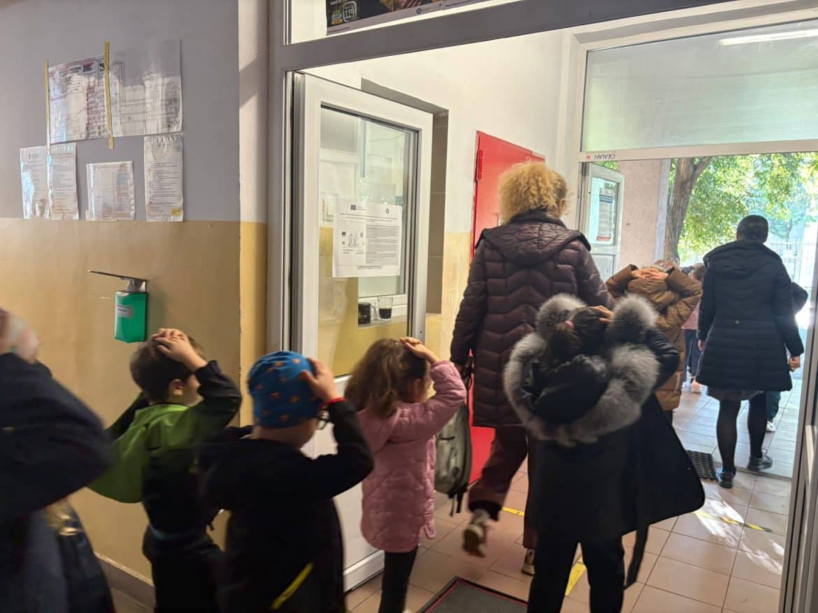 După simularea încetării mișcărilor seismice, a fost declanșată evacuarea ordonată a claselor către punctele de adunare din curtea școlii, unde s-au făcut apelurile nominale și raportarea situației.