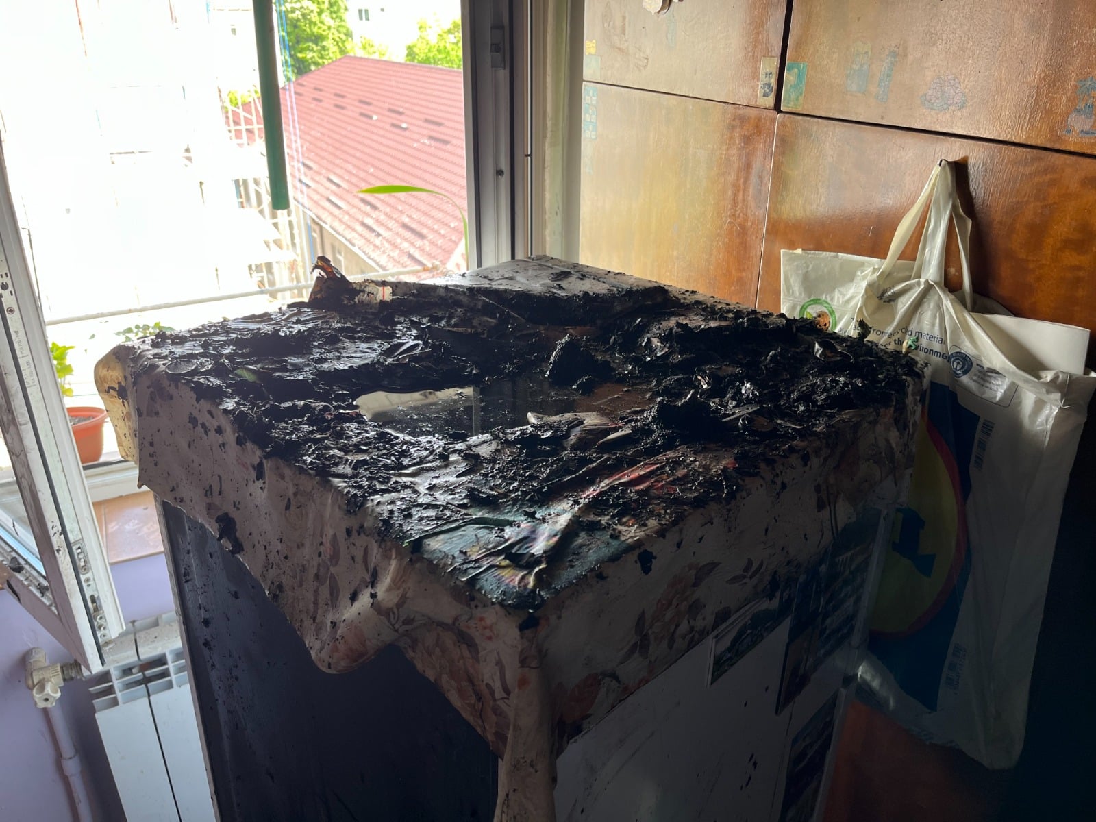 Cauza probabilă de producere a incendiului a fost o candelă lăsată aprinsă pe frigider a cărei flacără a aprins materialele combustibile din apropiere: hârtii și diferite obiecte din plastic.