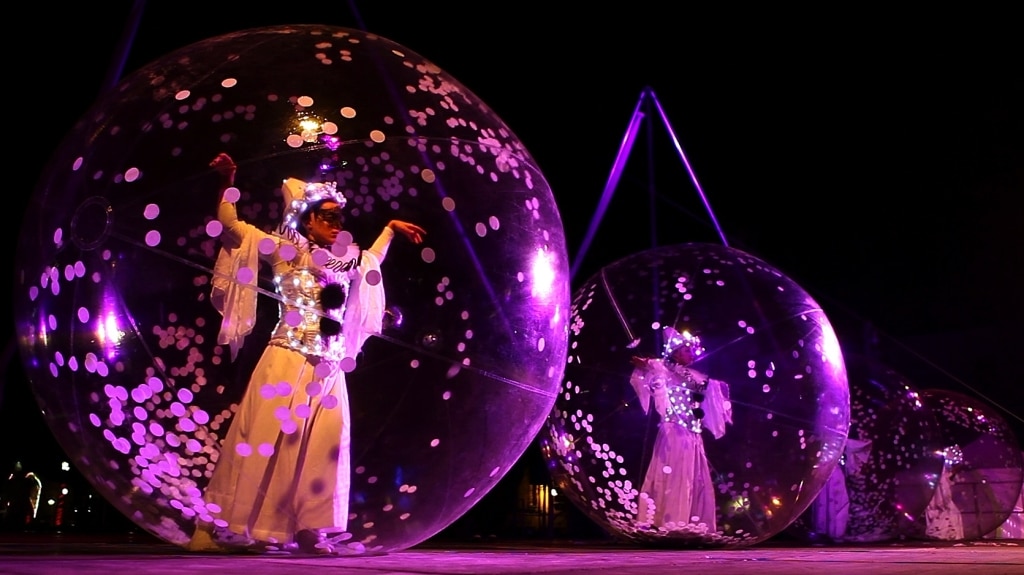 În cea de-a doua zi a festivalului, aceeași trupă, dar o lume roșie, „Red World”, un spectacol impresionant, un mix impresionant de artiști în costume acoperite parțial de baloane, creând astfel un efect unic, de vis.