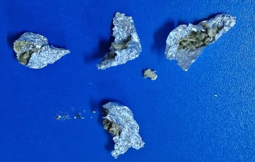În urma controlului corporal jandarmii au descoperit asupra unuia dintre tineri patru pachețele de staniol care conțineau o substanță vegetală de culoare verde, despre care posesorul a afirmat că este o substanță etnobotanică, cu efect psihoactiv.