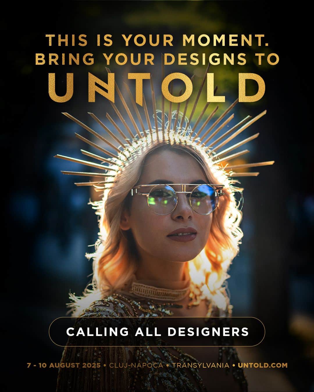 UNTOLD nu este doar un festival, este un univers. Unul în care energia, magia și libertatea se exprimă și prin modă. Designerii pot colora această lume prin creații vestimentare, colecții capsulă, design de obiect, încălțăminte, bijuterii, make-up, accesorii. Organizatorii UNTOLD caută designeri, creatori de stil și artiști îndrăzneți care doresc să facă parte din zona de fashion a festivalului.