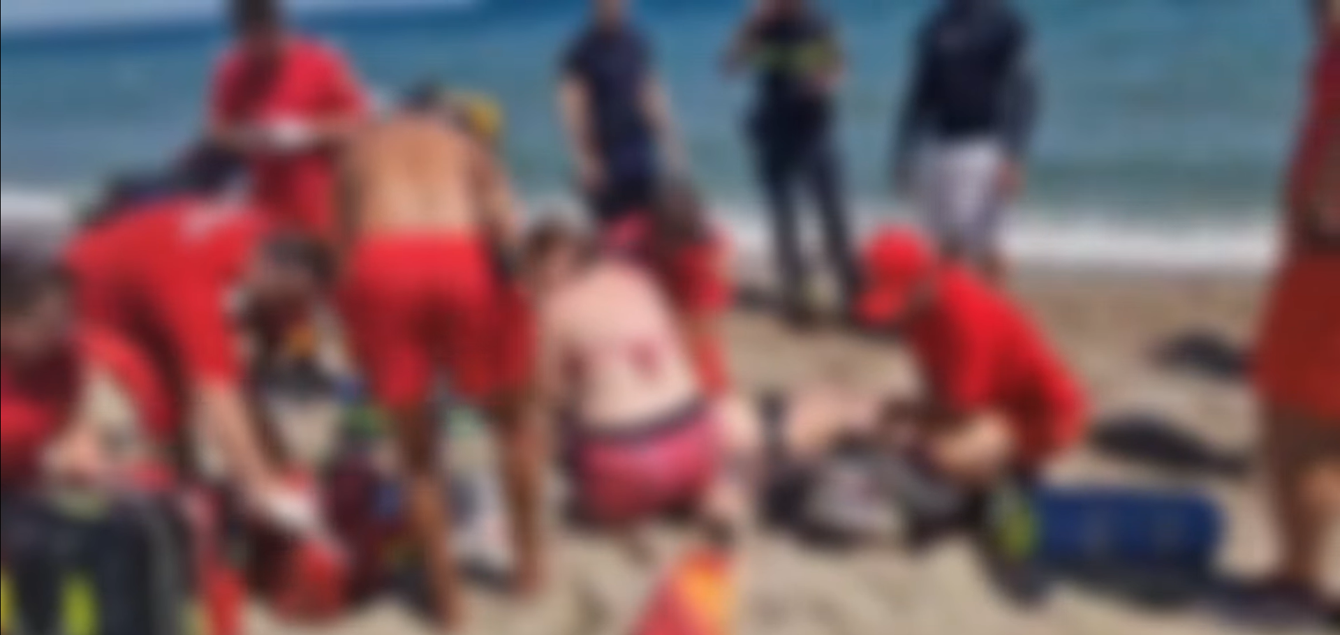 Momente dramatice, astăzi, 4 august 2025, pe plaja din Eforie Sud. Un tânăr este resuscitat chiar în aceste momente de echipajul SMURD, după ce a fost scos în stare inconștientă din mare de salvamari.