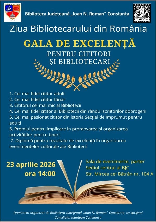 Cu ocazia Zilei Naționale a Bibliotecarului și a Zilei Internaționale a Cărții, ambele marcate pe 23 Aprilie, Biblioteca Județeană „Ioan N. Roman” Constanța organizează un eveniment aparte: Gala de Excelență, o celebrare a celor care, prin strădania, pasiunea și implicarea lor, duc mai departe misiunea bibliotecii publice.