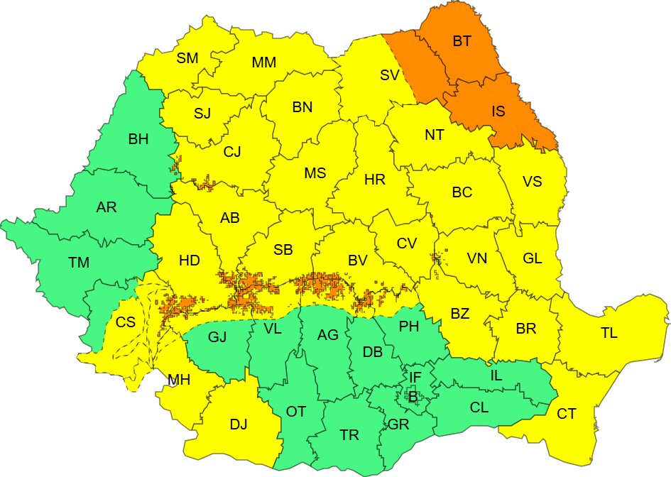 De asemenea, în intervalul 23 aprilie, ora 12:00 – 23 aprilie, ora 20:00, va fi cod portocaliu.